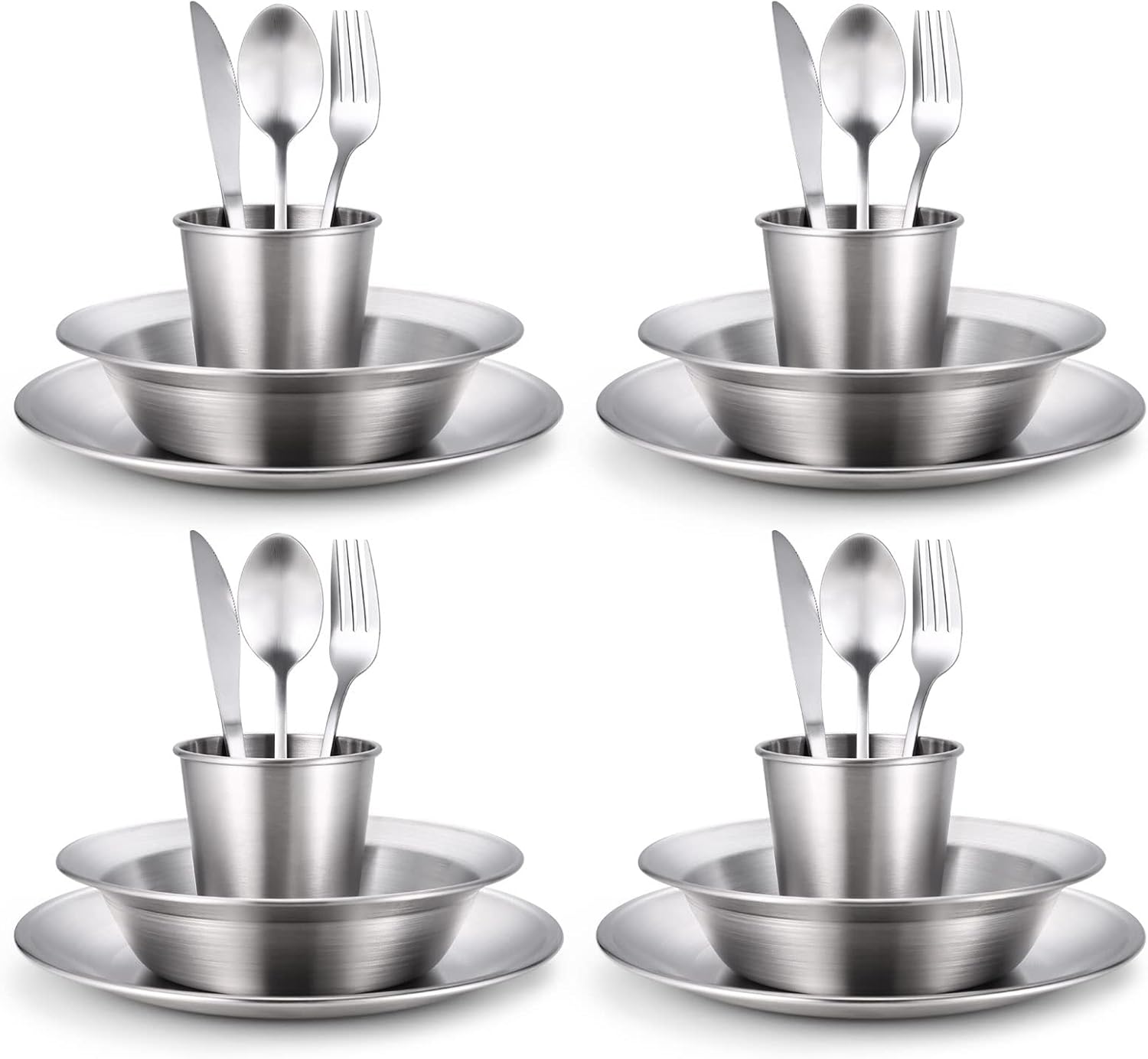 The Odoland Stainless Steel Camping Mess Kit is the ultimate all-in-one solution for outdoor dining. Designed for camping, hiking, backpacking, picnics, and other outdoor adventures, this kit includes everything you need to enjoy meals away from home: 4 plates, 4 cups, 4 bowls, 4 complete dinner cutlery sets (spoon, fork, knife), and a convenient travel case. Lightweight and portable, it’s perfect for sharing meals with family, friends, or fellow campers.