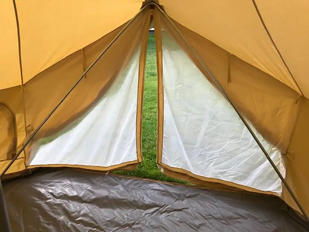 A proper groundsheet is essential for keeping moisture, dirt, and insects out. Some bell tents have removable floors while others are sewn-in. The Yukon Bell Tent features a PVC 540g groundsheet that zips into the tent and curves 3.5 inches up the walls, preventing water ingress. Using quality ground protection like this improves comfort, extends the life of the tent, and ensures a dry, clean interior. Simply put, it’s a superior ground system that provides much more flexibility than a sewn-in floor.
